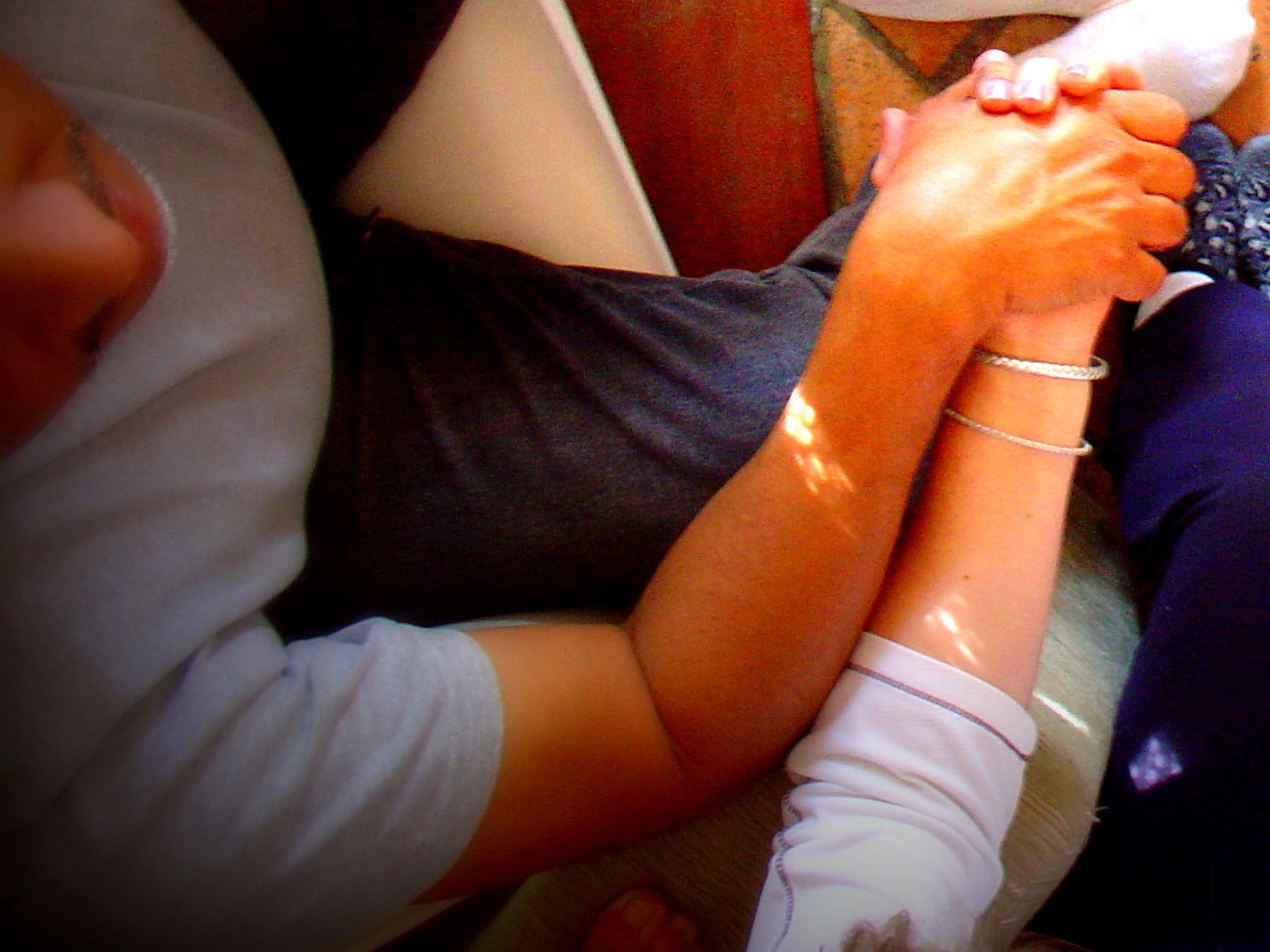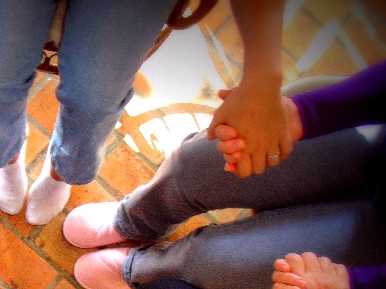 Também pode ser feito o círculo em pé, de mãos dadas, ou como um “trenzinho” onde a energia flui das mãos para as costas de cada integrante à sua frente do círculo.